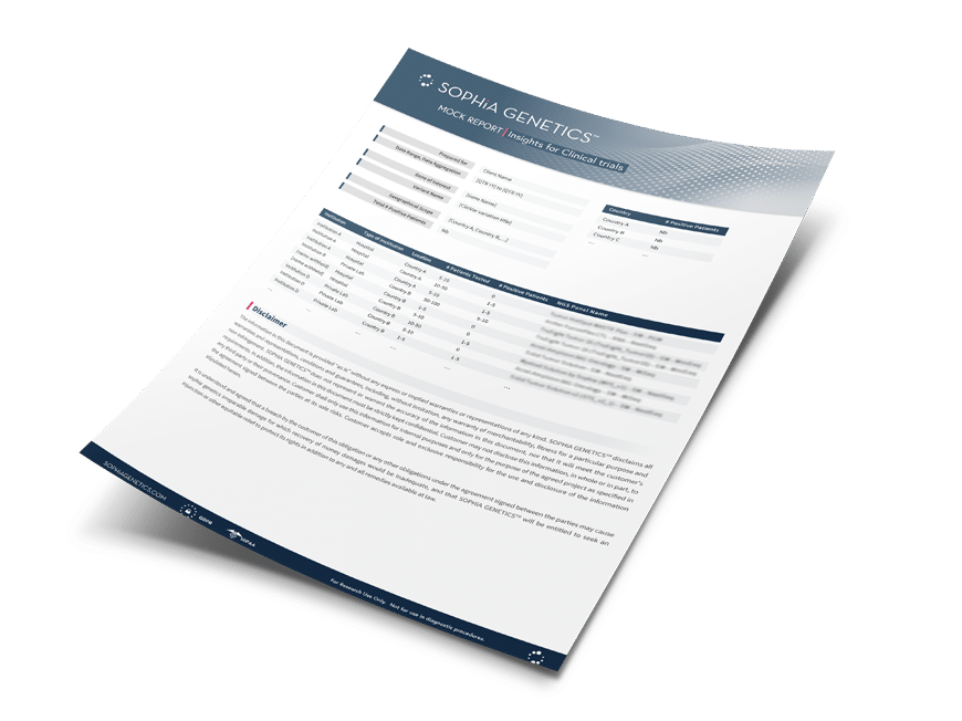 All third-party trademarks listed by SOPHiA GENETICS remain the property of their respective owners. Unless specifically identified as such, SOPHiA GENETICS’ use of third-party trademarks does not indicate any relationship, sponsorship, or endorsement between SOPHiA GENETICS and the owners of these trademarks. Any references by SOPHiA GENETICS to third-party trademarks is to identify the corresponding third-party goods and/or services and shall be considered nominative fair use under the trademark law.