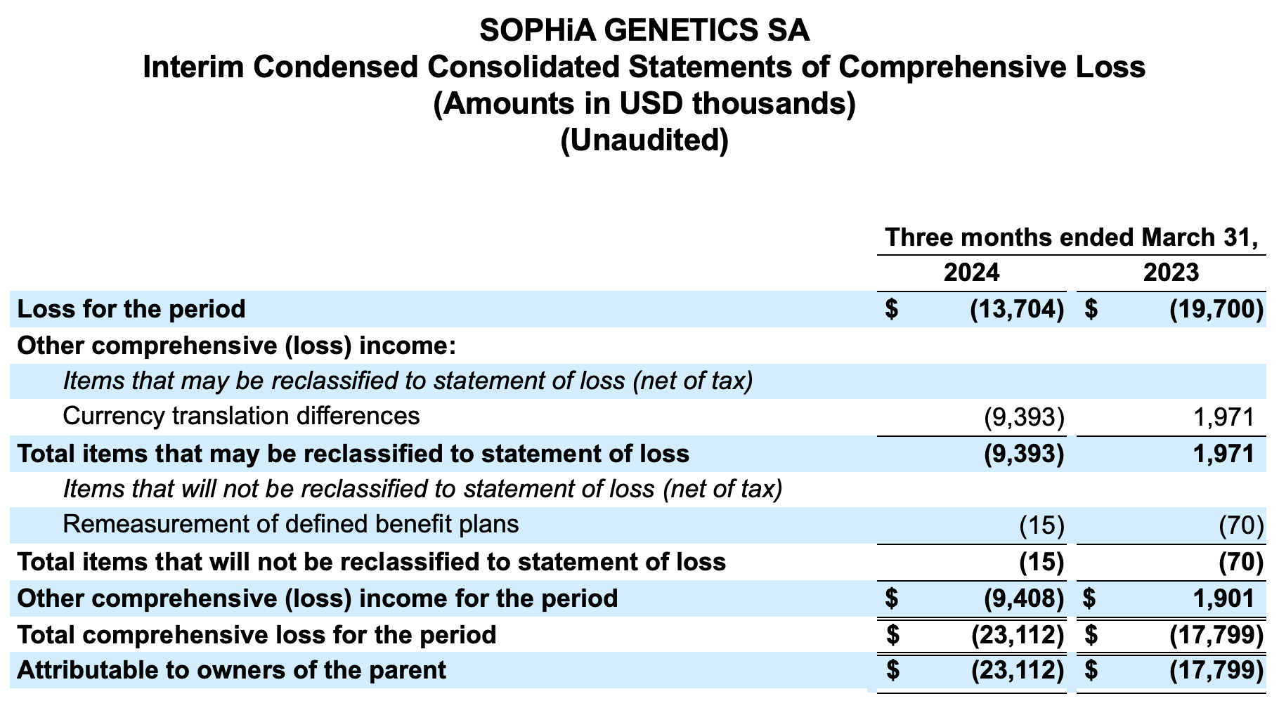 BOSTON, United States and ROLLE, Switzerland, May 7, 2024 — SOPHiA GENETICS (Nasdaq: SOPH), a cloud-native software company and leader in data-driven medicine, today reported financial results for the first quarter ended March 31, 2024.