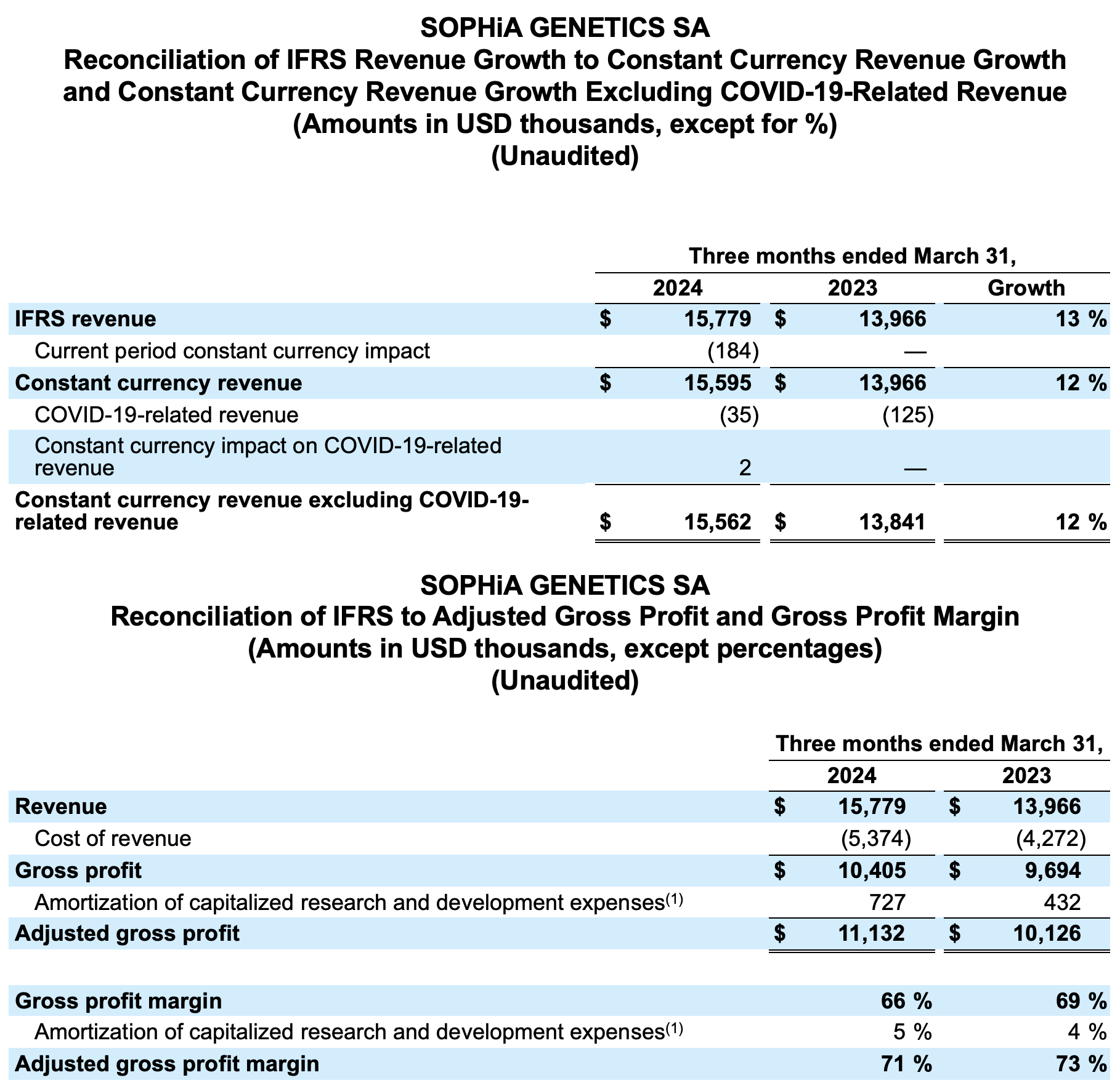 To provide investors with additional information regarding the company’s financial results, SOPHiA GENETICS has disclosed here and elsewhere in this earnings release the following non-IFRS measures: