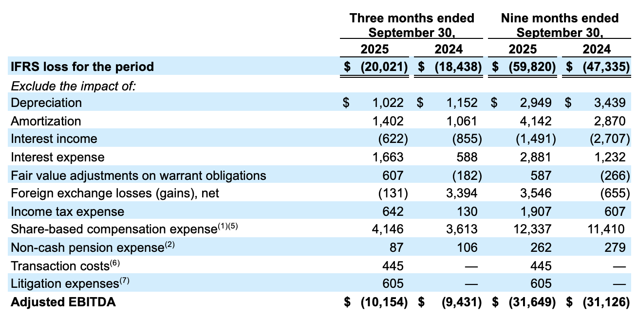 Reconciliation of IFRS Net Loss to Adjusted EBITDA