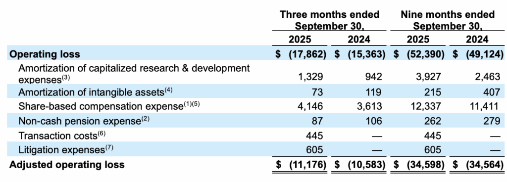 Other than with respect to revenue, the Company only provides guidance on a non-IFRS basis. The Company does not provide a reconciliation of forward-looking adjusted gross margin (non-IFRS measure) to gross margin (the most comparable IFRS financial measure), due to the inherent difficulty in forecasting and quantifying amortization of capitalized research & development expenses that are necessary for such reconciliation. In addition, the Company does not provide a reconciliation of forward-looking adjusted operating loss (non-IFRS measure) to operating loss (the most comparable IFRS financial measure), due to the inherent difficulty in forecasting and quantifying amortization of capitalized research & development expenses and intangible assets, share-based compensation expenses, the non-cash portion of pensions paid in excess of actual contributions, certain transaction costs and litigation expenses that are necessary for such reconciliation.
