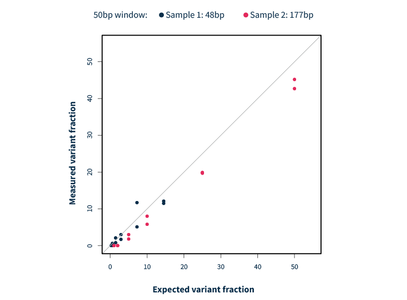 The advanced analytics of SOPHiA DDM™ provide optimized variant detection in a single workflow. For example, the SOPHiA DDM™ for Blood Cancer applications have been trained to efficiently detect all FLT3 fragment sizes, irrespective of the insertion point. All confirmed ITDs were detected (no false negatives) and no additional variant was called (no false positives), making it a robust and reliable detection method.