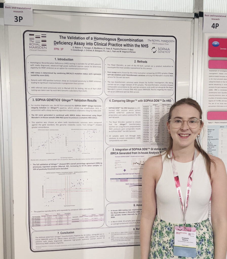 We were delighted to meet with the two presenters of this poster, Elizabeth Ratsma, Pre-Registration Clinical Scientist - Cancer Genomics and Charlotte Flanagan, PhD, Innovation Lead at The Royal Marsden NHS Foundation Trust. The poster was recently presented at the ESMO Gynaecological Cancers Congress 2024 in Florence, Italy.